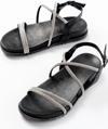 ZenaLook 1001-1105 Siyah Gümüş Taşlı Günlük Kadın Sandalet