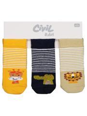 10189 Civil Baby Animal 3'lü 6-18 Ay Bebek Erkek Çorap Set - Standart12 Ay