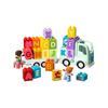 - Okul öncesi çağdaki çocuklar için yapım oyuncakları – Römorku ayrılabilen, sürülebilen bir kamyon, 2 LEGO® DUPLO® figürü ve 26 adet harfli yapım parçası içerir