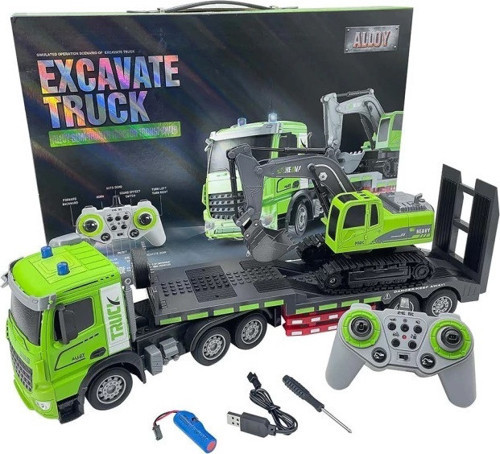 Scowetto 1:12 Ölçek Uzaktan Kumandalı Işıklı Tır ve Ekskavatör Kepçe Seti – Şarjlı RC İnşaat Aracı Oyuncak