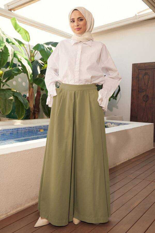 - Ürün Adı : 1163-Parça Boya Pileli Pantolon Etek Haki