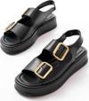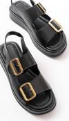 1187 Siyah Dolgu Topuk Lastik Baretli Kadın Sandalet modeli; stil sahibi, konforlu ve şık görünüm arayanlar için özel olarak tasarlanmıştır.
