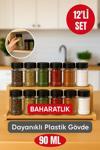 12 adet × 90 ml baharatlık (siyah kapaklı, şeffaf gövdeli)