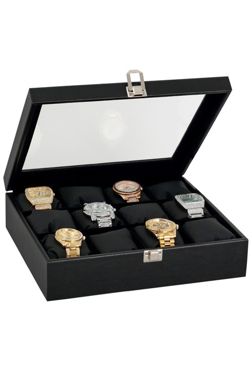 Ürün boyutları ; 27,5 cm. x 24 cm. x 7 cm. (yükseklik). Ahşap üzeri deri kaplama. Üst kısmı cam. Özel kilitli saat kutusu. 12 adet saat alır. Yastıklar Dahildir. Her bir saat boşluğu : 7 x 6 yükseklik : 6 cm. Saatler dahil değildir. Kargo da zarar görmemesi için özel aparatlar ile zarar görmeyecek şekilde paketlenir. Size gelende şayet yapıştırıcı kokusu var ise, o ürün yeni üretilmiş bir üründür. 48 saat kapağını açıp bekletirseniz hiç koku kalmayacaktır.