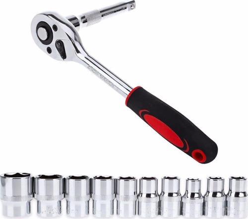 Ramdet 12 Parça Çelik Lokma Takımı Cırcır Seti 10-24 mm 1/2 Cırcır Kollu chrome vanadium Lokma Anahtar Takımı