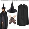 Morotonom 120 Cm Siyah Yakalı Cadı Pelerini Cadı Şapkası Ve 1 Çift Siyah Kısa File Tüm Eldiven Seti 3 Parça
