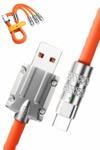 120W Süper Hızlı 6A Led Işıklı 3 Başlıklı Şarj ve Data Kablosu – Type-C / Micro USB / Lightning Uyumlu