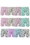 12li Kız Çocuk Uzun Boxer Pamuklu Likralı Baskılı Renkli