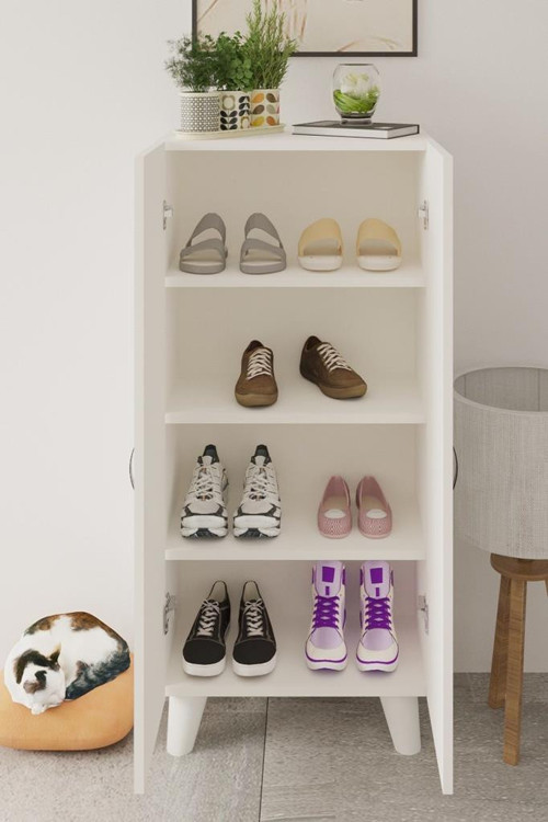 KZY 12r 4 Raflı 2 Kapaklı Ayakkabı Dolabı Ayakkabılık Çok Amaçlı Dolap Kiler Dolabı Erzak Dolabı Beyaz