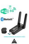 Anunnaki 1300 Mbps Usb WiFi 6 Adaptör 2.4G+5G ve Bluetooth 5.4 Tak Çalıştır Çift Antenli Wifi Dongle