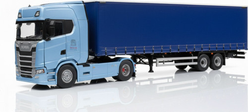 Modern Scania kabini, detaylı iç yapı, kauçuk tekerlekler ve gerçeğine yakın mavi branda dorsesi ile oldukça etkileyici bir görünüme sahiptir. Sağlam metal gövdesi sayesinde uzun yıllar dekor veya oyun amaçlı kullanılabilir.