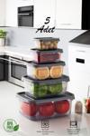 Porsima 1362 Festiva 5 li Dikdörtgen No-Frost Derin Dondurucu Mikrodalga Yiyecek Saklama Kabı Seti