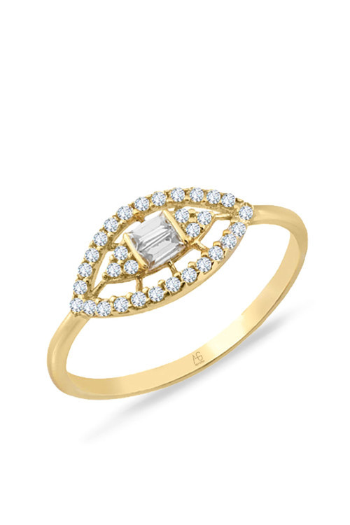 14 ayar sarı altın baget tasarımıyla günlük kullanıma uygun parmağınızda stilinize hava katacak 1.40 gram ağırlığında zirkon taşlı göz yüzük.