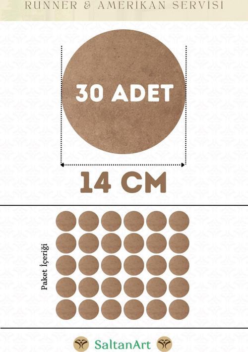 SaltanArt 14 cm Çap 30 Adet Supla Amerikan Servis Runner MDF Duralit Magnet Altı Ahşap 3 mm (2,7 mm) Kalınlık