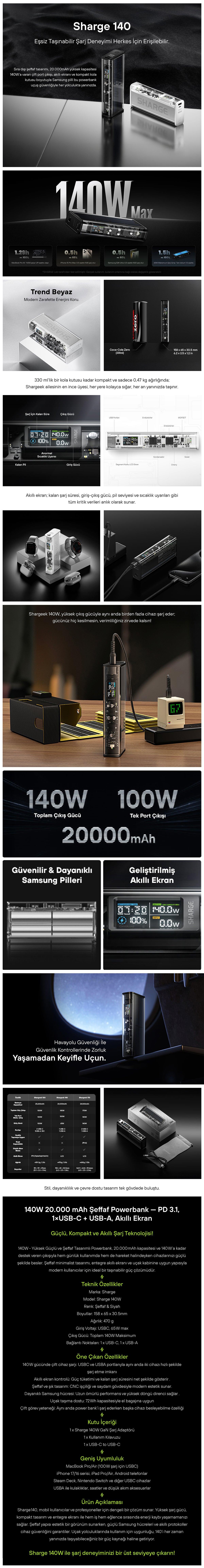 Sharge 140W - Yüksek Güçlü Ve Şeffaf Tasarımlı Powerbank Gri