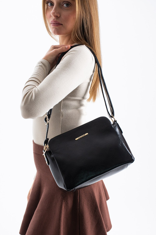 Sanmorris 1437 Kadın Suni Deri Ayarlanabilir Çapraz Askılı 3 Bölmeli Ve Gold Fermuarlı Omuz Çantası(26x30)