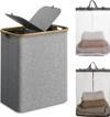 150 Lt Katlanır Kumaş Bambu Çamaşır Sepeti 2 Bölmeli İçi Fileli Kirli Çamaşır Sepeti