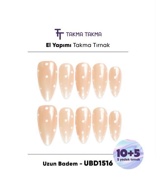 Takma Takma 15'li Ten Rengi Uzun Badem UBD1516 Tekrar Kullanılabilir El Yapımı Protez Takma Tırnak Ten Rengi-XS