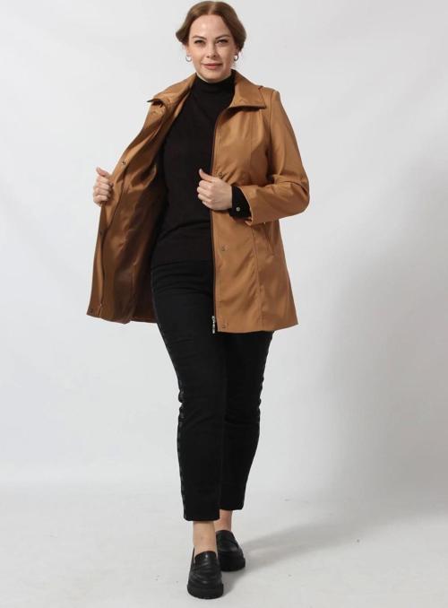 1616 Fermuarlı Cep Detaylı Kapuşonlu Bondit Ceket