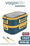 VAGONLİFE 1650 ML iki kat üç bölme paslanmaz çelik lunch box yeni nesil sefer tası-Kaşık Ve Çatallı