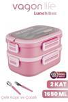 VAGONLİFE 1650 ML iki kat üç bölme paslanmaz çelik lunch box yeni nesil sefer tası-Kaşık Ve Çatallı