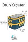 Vagonlife 1650 ML İki Kat Üç Bölme Paslanmaz Çelik Lunch Box Yeni Nesil Sefer Tası - Kaşık Ve Çatallı -6715