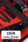 - rün parçaları paslanmaz çelikten üretilmiş olup, el ve ayak bakımı için gereken tüm malzemeler mevcuttur.Güvenli sterilizasyon sağlar, kolay temizlenir, uzun ömürlüdür, korozyonu önler ve enfeksiyon riskini en aza indirir. Ayrıca keskinliği iyileştiren yeni nesil siyah kaymaz parlatma teknolojisi kullanılmıştır, bu estetiğin yanında kavramayı ve kullanımı kolaylaştırır. Set taşınabilir şık ve sağlam bir deri kaplama kutusu ile birliktedir, tek düğmeyle kolayca açılır. Aynı zamanda çok hafiftir, böylece her gün çantanızda taşıyabilir veya seyahatlerde yanınıza alabilirsiniz. Ürün suni serili kılıfı ile beraber gönderilir. Ürün içeriği