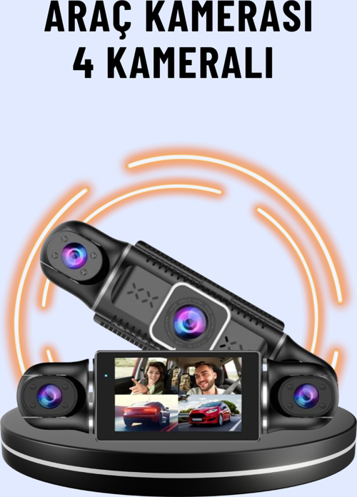 Bu 4 kameralı araç kayıt sistemi, tam kapsamlı bir güvenlik çözümü sunar.
