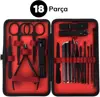 18 Parça Manikür Pedikür Set Kutusu Çelik Deri Çantalı Bakım Seti