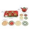 Çay saati var mı? Ev sahibimiz bir parti veriyor ve siz de davetlisiniz. Çocuklar bu güzel Metal çay takımıyla her zaman çay partisi yapmayı çok sevecek. Bu harika Metal çay takımı, bir çaydanlık, büyük servis tepsisi, 4 fincan, 4 fincan tabağı, 4 Çay Kaşığı ve 4 tabakla birlikte geliyor. Her parça sevimli meyveler ve çiçeklerle süslenmiş.