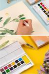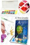 Ürün Adı: 18 Renk Tablet Sulu Boya ve A3 Telli Suluboya Bloğu Kağıdı A3 210gr 20 Yaprak İnce Dokulu Taş Suluboya Plastik Kutulu