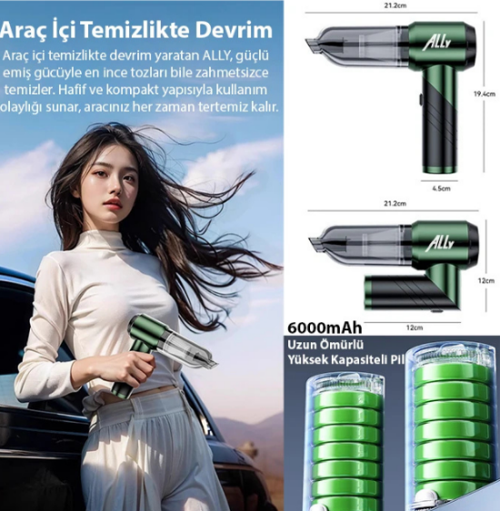 ALLY ST-6670PLUS 18000pa Güçlü Portatif 3 Kademeli Tasinabilir Vakumlu Kablosuz Üflemeli Mini Araç Süpürgesi