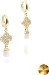 Sallantılı tasarımı ile bu küpeler, hareket ettikçe inci ve yonca motifinin ışıltısını gözler önüne serer.