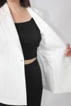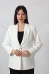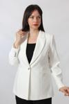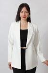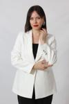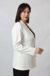 1904 Beyaz Fermuarlı Cep Aksesuarlı Kadın Büyük Beden Blazer Ceket