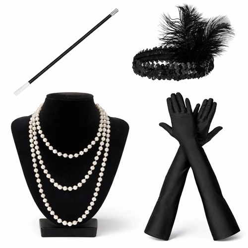 Zarif ve dikkat çekici bir stil için özel olarak hazırlanan 1920&rsquoler Çarliston Aksesuar Seti, dönemin ikonik detaylarını bir araya getirir. Işıltılı ve sofistike görünüm sunan bu set, konsept davetler, temalı organizasyonlar, sahne performansları ve fotoğraf çekimleri için ideal bir tamamlayıcıdır.
