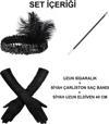 192039ler Gatsby Aksesuar Seti – Siyah Charleston Saç Bandı, Uzun Eldiven Lık