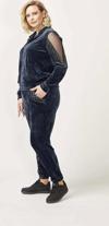 Moda Berray 1950 Kolları Taşlı Tam Kalıp Tarz Kadife Büyük Beden Eşofman Takım Lacivert