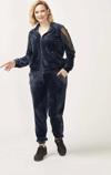 1950 Kolları Taşlı Tam Kalıp Tarz Kadife Büyük Beden Eşofman Takım Lacivert