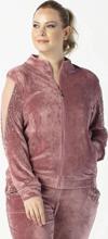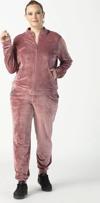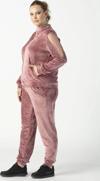 Moda Berray 1950 Kolları Taşlı Tam Kalıp Tarz Kadife Büyük Beden Eşofman Takım Pembe