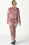 1950 Kolları Taşlı Tam Kalıp Tarz Kadife Büyük Beden Eşofman Takım Pembe