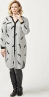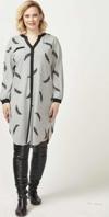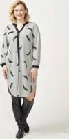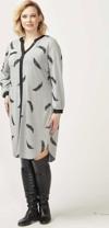 1956 Gri Tüy Desenli Uzun Kollu Esnek Büyük Beden Triko Elbise