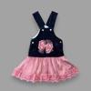 2-3-4 Yaş Fiyonklu Düğme Detaylı Tül Etek Kot Kumaş Salopet Kız Çocuk Elbisesi Lacivert-gül Kurusu