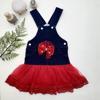 Beruflic 2-3-4 Yaş Fiyonklu Düğme Detaylı Tül Etek Kot Kumaş Salopet Kız Çocuk Elbisesi Lacivert-kırmızı