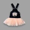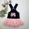 2-3-4 Yaş Fiyonklu Düğme Detaylı Tül Etek Kot Kumaş Salopet Kız Çocuk Elbisesi Siyah-pudra