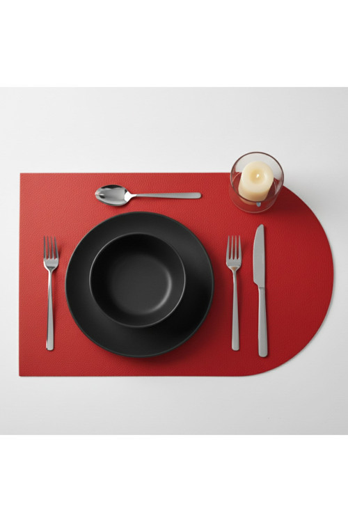 Grand Fine Art 2 Adet Kırmızı Deri Yarım Oval Amerikan Servis Supla 30x44 cm-Kolay Silinebilir Supla