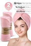 Telvesse 2 Adet Mikrofiber Saç Havlusu Lastikli Plaj Deniz Havuz Bonesi Banyo Saç Kurutma Baş Havlusu Pembe