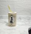 2 ADET SERAMİK DİŞ FIRÇALIK MADAM DESENLİ 7X7X11CM BANYO SETİ