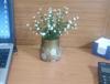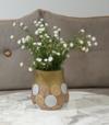 Bosphorus 2 ADET VAZO DAHİL,VAZODA ÇİÇEK,BEYAZ YAPAY ÇİÇEK,VAZO DEKORATİF ALTIN PUANLI POLİRESİN 9X9X15CM