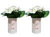 2 ADET VAZO DAHİL,VAZODA ÇİÇEK,BEYAZ YAPAY ÇİÇEK,VAZO DEKORATİF  BAHAR DESENLİ 7X7X16CM