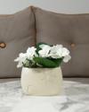 Tek dal beyaz yapay çiçek, doğal bir görünüm sunarken, poliresin malzemeden üretilmiş istiridye şeklindeki vazo, şıklığı ve dayanıklılığı bir arada sunuyor.